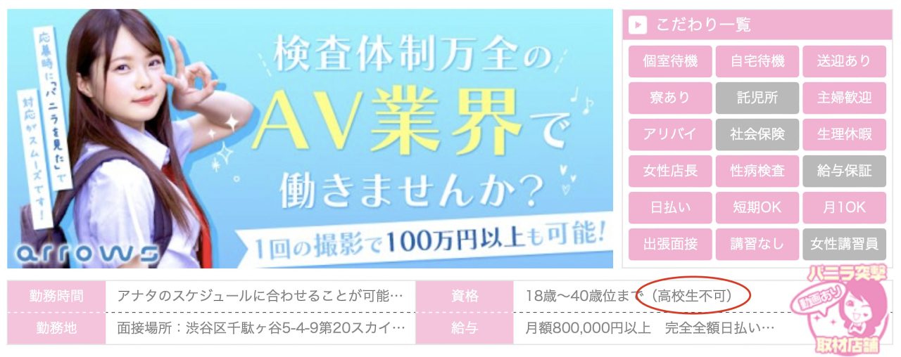 AVプロダクション、AVメーカーはそんなリスクを犯すメリットは一切ないため18才未満の方はAVに出演することはできません。