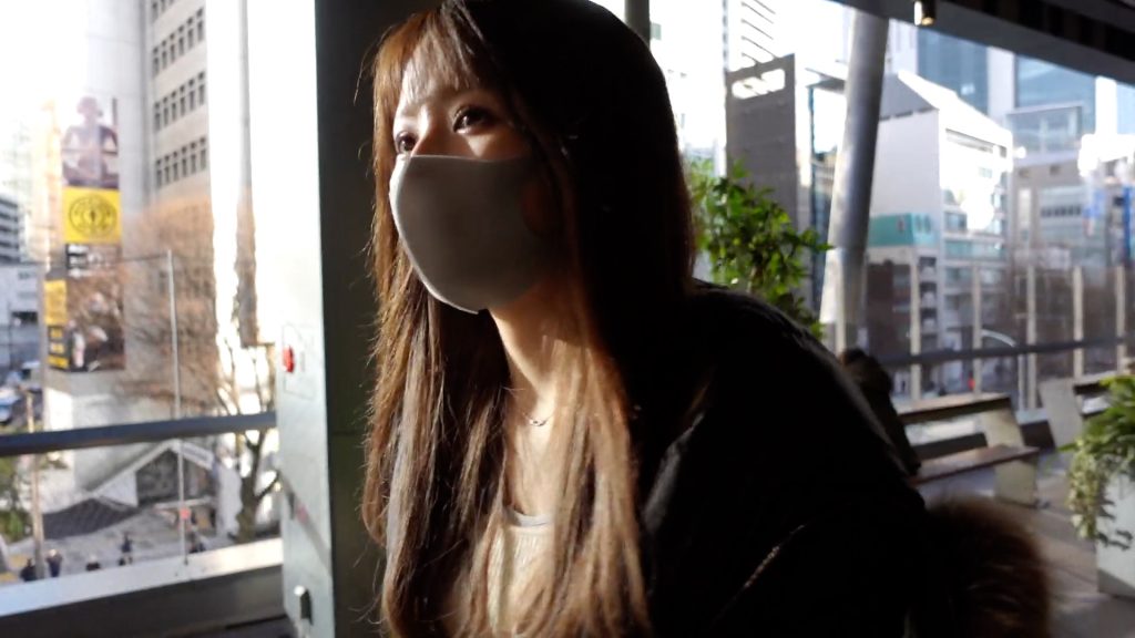 「お顔を見ながらイキたい」とお願いするとマスクを外してくれましたが手で顔を隠してます。